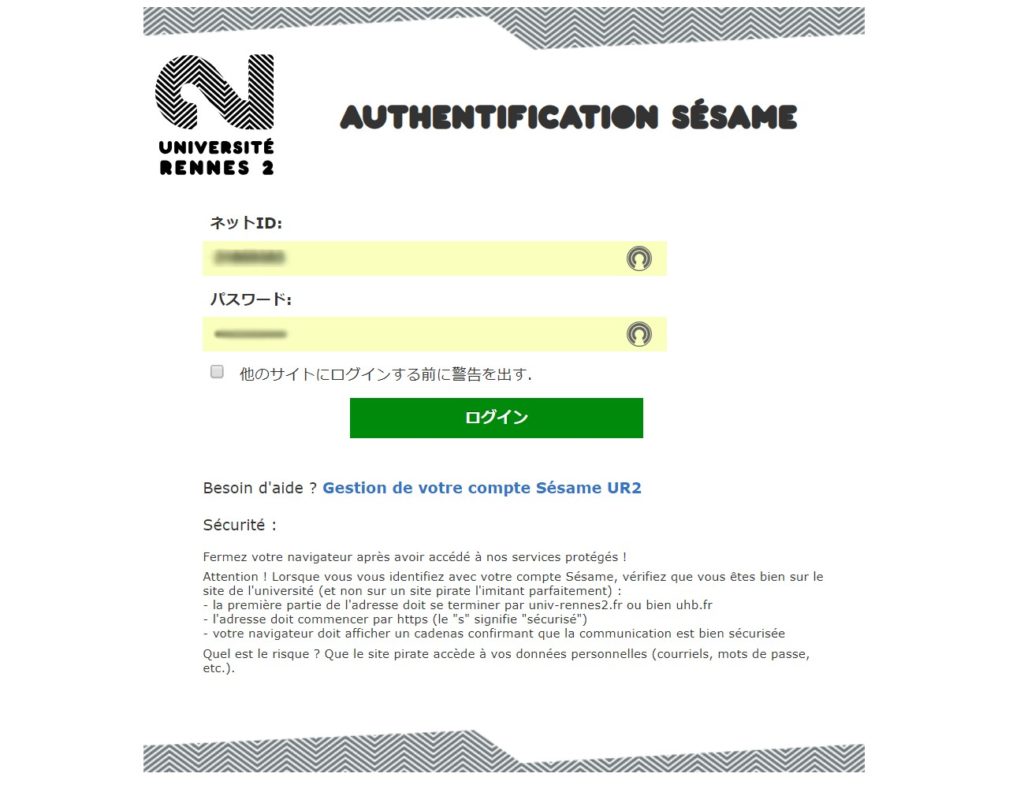 ①レンヌ第二大学の学生向けのHPから、左上の『courrier』を押して学校用のメールを開きます。